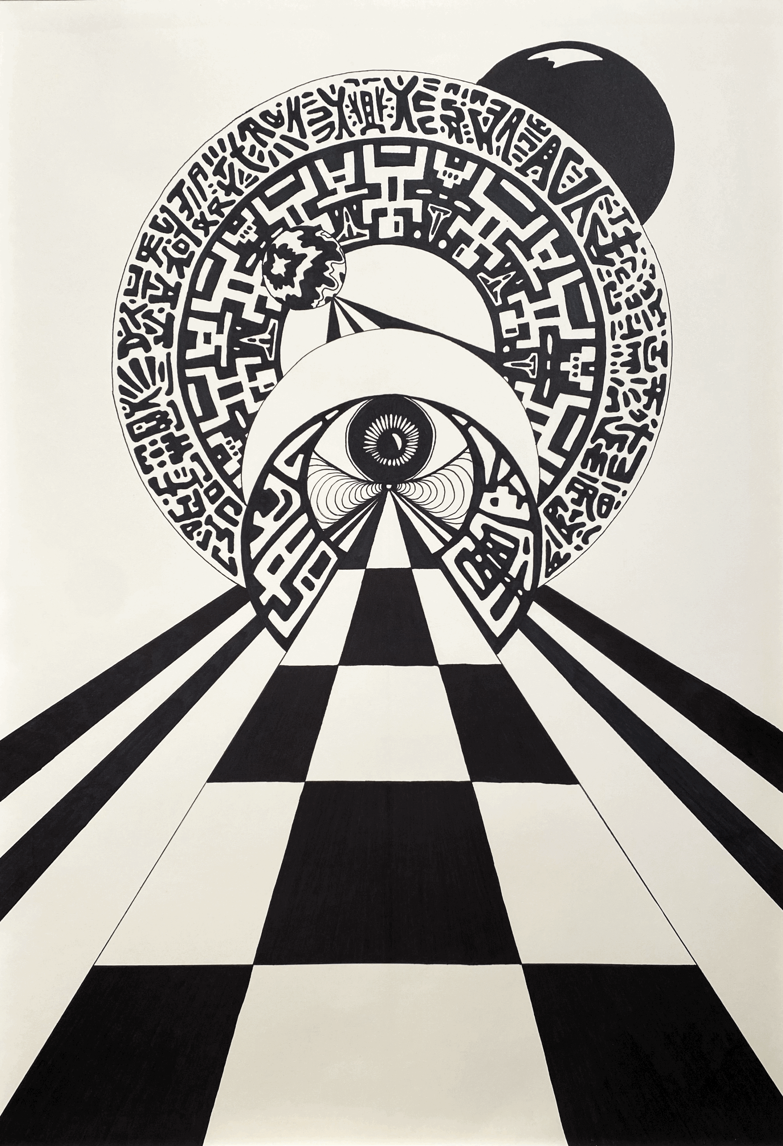 Time Will Tell, Structures of Consciousness No. 5, Pencil, Ink Marker on Paper, 27.5” h x 19.5” w, 2025
