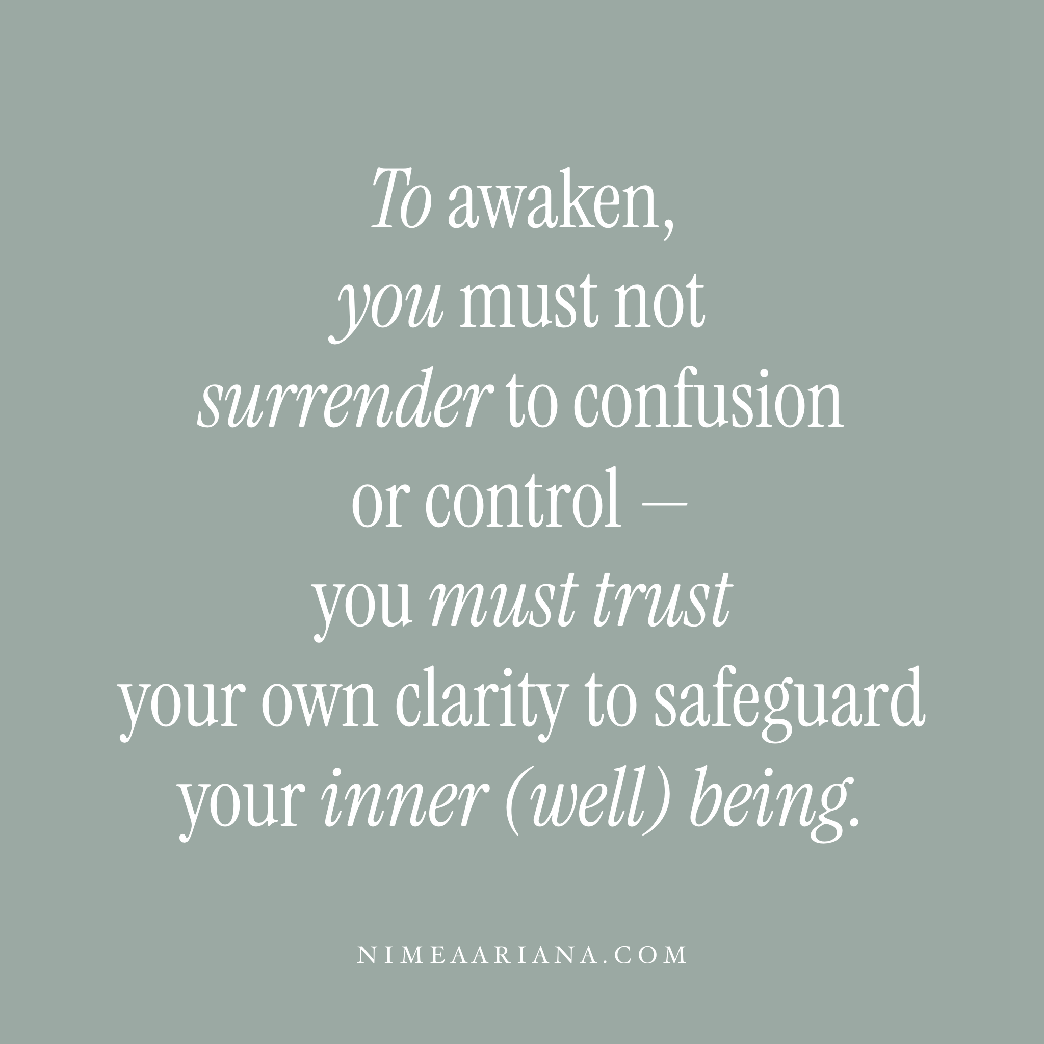 As the day breaks, a thought emerges from within a dream: “To awaken, you must not surrender to confusion or control — you must trust your own clarity to safeguard your inner (well) being.”